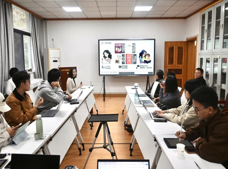 讲座伊始,李晓静教授追忆了自己在武大的求学生活。随后,她介绍了这本著作十多年的研究历程。“智能媒体使用与儿童身心发展研究”这一选题源自李晓静老师作为学者和作为母亲,长期育儿实践、生活经历和学术研究的思考。李老师自2012年开始系统关注智能媒介使用对儿童心智发展的影响,并在其参与的思源公益乡村教育实践项目中不断深化对于这一问题的思考,之后通过理论研究、田野观察、大规模问卷调研、访谈、实验等混合方法进行研究,力图为解决我国儿童合理的智媒使用、弥合城乡儿童数字鸿沟等问题作出学术贡献。